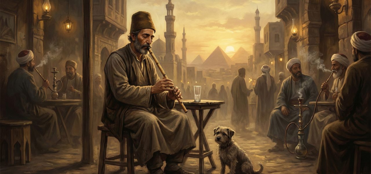 1908’de İkinci Meşrûtiyet’in ilanında Türkiye’ye dönen Neyzen Tevfik’i ailesi İzmir’de karşılamıştır. Ailesi Neyzen’in Mısır’da uzun yıllar saraylara davetli olduğunu bildiği için zengin olarak ülkeye döneceğini düşünür. Fakat Neyzen Tevfik ülkeye yanında bir köpek ve bir bavulla çıkagelir. Neyzen Tevfik, babasının ‘Yıllardır Mısır’da ne yaptın?’ sorusuna Ezher Medresesi’nde Şeyh Muhammed Abduh’dan ders aldığı cevabını verir. Babasını hayal kırıklığına uğratmamak için fazla ayrıntıya girmek istemez.