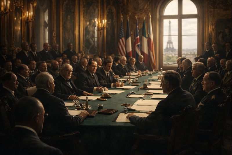 Paris’teki otel lobilerinde çizgili pantolonlu ve frak ceketli diplomatlar yeni bir dünyadan bahsediyordu. Bazen kavgalara dönüşen bu tartışmalarda birileri çok sevinçli iken bazıları da çok hüzünlüydü. Hemen her gün toplanıyorlardı. Tartışıyorlar, konuşuyorlar, kavga ediyorlar, yeniden barışıyorlardı. Aralarında anlaşmalara varıyor, bir takım ittifakları kaleme alıyor, yeni ülkeler ve yeni kurumlar yaratıyorlardı. Birlikte yemek yiyor ve tiyatroya gidiyorlardı.